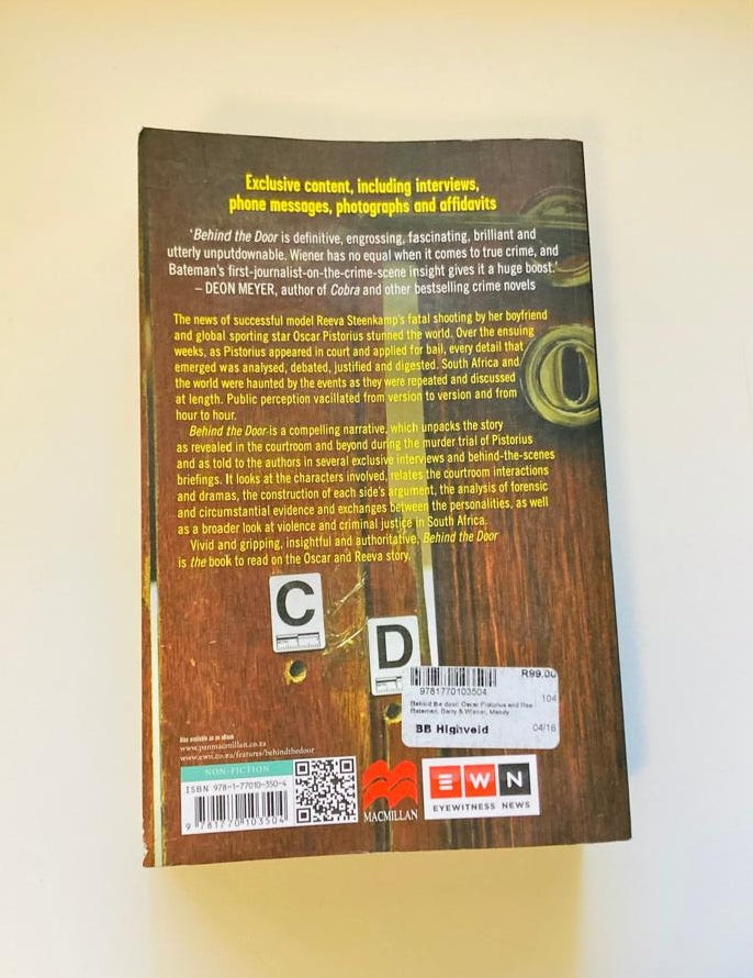 Behind the Door is a compelling narrative, which unpacks the story as revealed in the courtroom and beyond during the murder trial of Pistorius and as told to the authors in several exclusive interviews and behind-the-scenes briefings. It looks at the characters involved, relates the courtroom interactions and dramas, the construction of each side's argument, the analysis of forensic and circumstantial evidence and exchanges between the personalities, as well as a broader look at violence and criminal justice in South Africa.