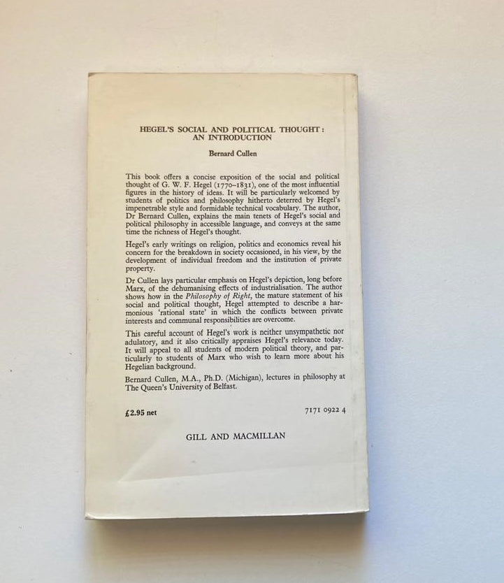 Dr Cullen lays particular emphasis on Hegel's depiction, long before Marx, of the dehumanising effects of industrialisation. The author shows how in the Philosophy of Right, the mature statement of his social and political thought, Hegel attempted to describe a harmonious 'rational state' in which the conflicts between private interests and communal responsibilities are overcome.