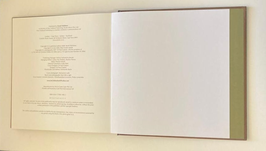 "In Celebration of Fynbos" invites you to explore the magical uses and splendour of fynbos. Enjoy this beautifully illustrated book with more than 200 full-colour photographs showcasing 50 plants from the fynbos kingdom with practical information for each one. This ranges from gardening tips to recipes and from decorations to medicinal remedies. "In Celebration of Fynbos" is ideal for nature lovers and anyone interested in using nature's gifts in their everyday lives.