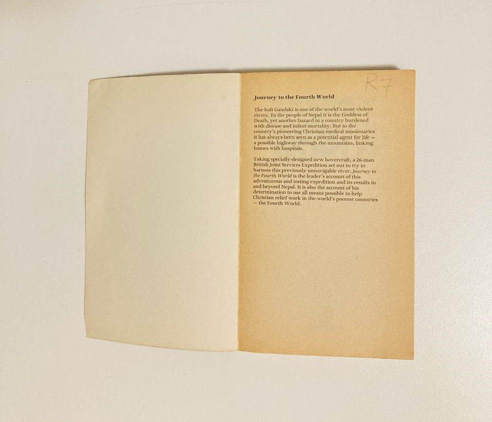 Taking specially-designed new hovercraft, a 26-man British Joint Services Expedition set out to try to harness the previously unnavigable river. Journey to the Fourth World is the leader's account of this adventurous and testing expedition and its results in and beyond Nepal. It is also the account of his determination to use all means possible to help Christian relief work in the world's poorest countries - the Fourth World.