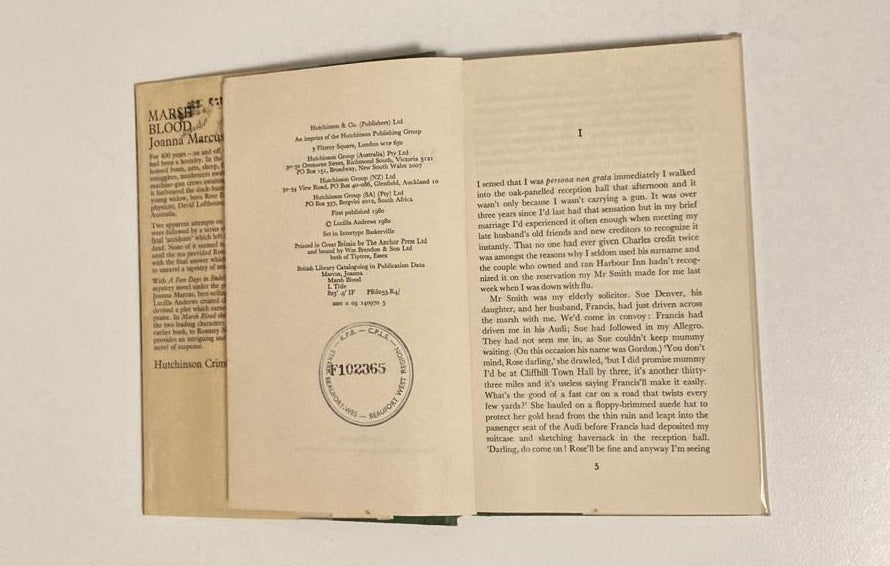 With A Few Days in Endel, her first mystery novel under the pseudonym of Joanna Marcus, best-selling author Lucilla Andrews created characters and devised a plot which earned her high praise. In Marsh Blood she returns, with the two leading characters from her earlier book, to Romney Marsh and provides an intriguing and skilfully told novel of suspense.