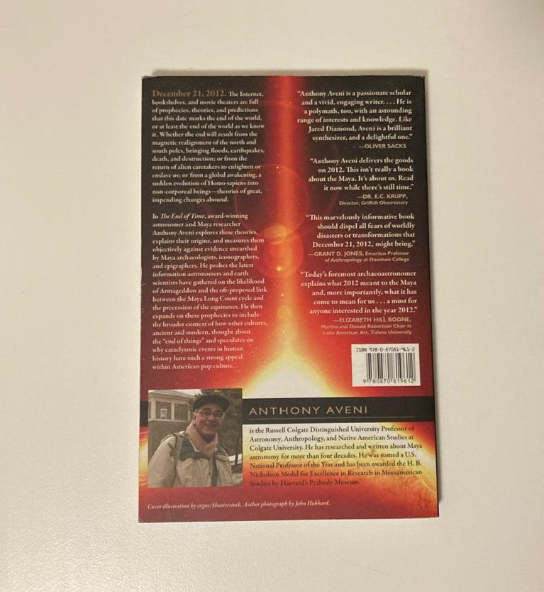 In The End of Time, award-winning astronomer and Maya researcher Anthony Aveni explores these theories, explains their origins, and measures them objectively against evidence unearthed by Maya archaeologists, iconographers, and epigraphers. He probes the latest information astronomers and earth scientists have gathered on the likelihood of Armageddon and the oft-proposed link between the Maya Long Count cycle and the precession of the equinoxes. He then expands on these prophecies to include the broader context of how other cultures, ancient and modern, thought about the "end of things" and speculates on why cataclysmic events in human history have such a strong appeal within American pop culture.