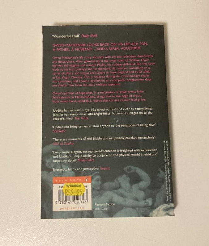 Owen Mackenzie’s life story abounds with sin and seduction, domesticity and debauchery. After growing up in the small town of Willow, Owen marries the elegant and remote Phyllis, his college girlfriend. But this soon ends in his first betrayal and he abandons his reserve, embarking on a series of affairs and sexual encounters in New England and as far afield as Las Vegas, Nevada. This is America during the revolutionary sixties and seventies, and Owen’s profession as a computer programmer does not shelter him from the era’s reckless appetites.